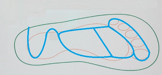 Blue lines - rubber piping in sole of boot to be filled with warm/hot water.